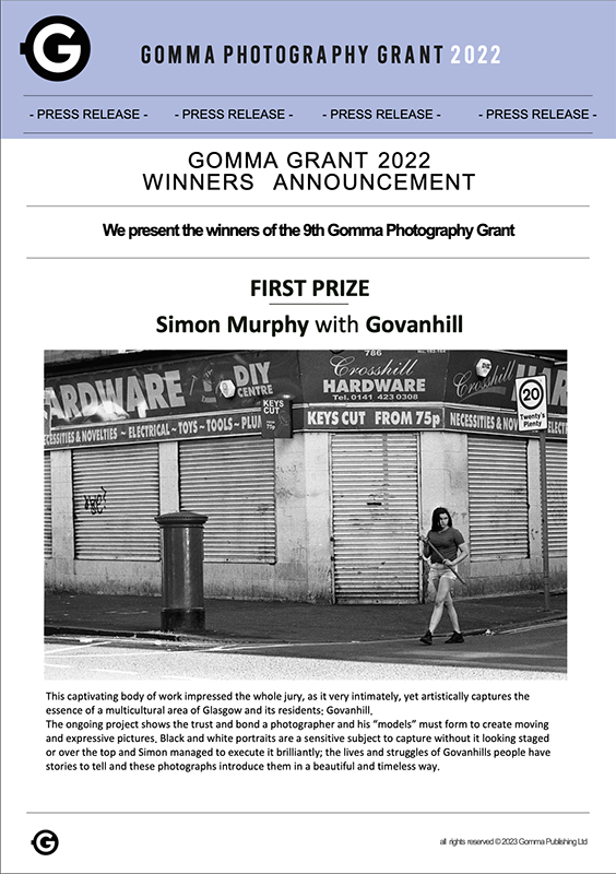 Simon Murphy, the winner of the Gomma Photography Grant 2022, in addition to the cash prize won an exclusive publishing contract with Gomma Publishing Ltd and his first publication will be launched in October 2023. The photographer as per contract will be also enjoying a 10% on net sales proceedings.
