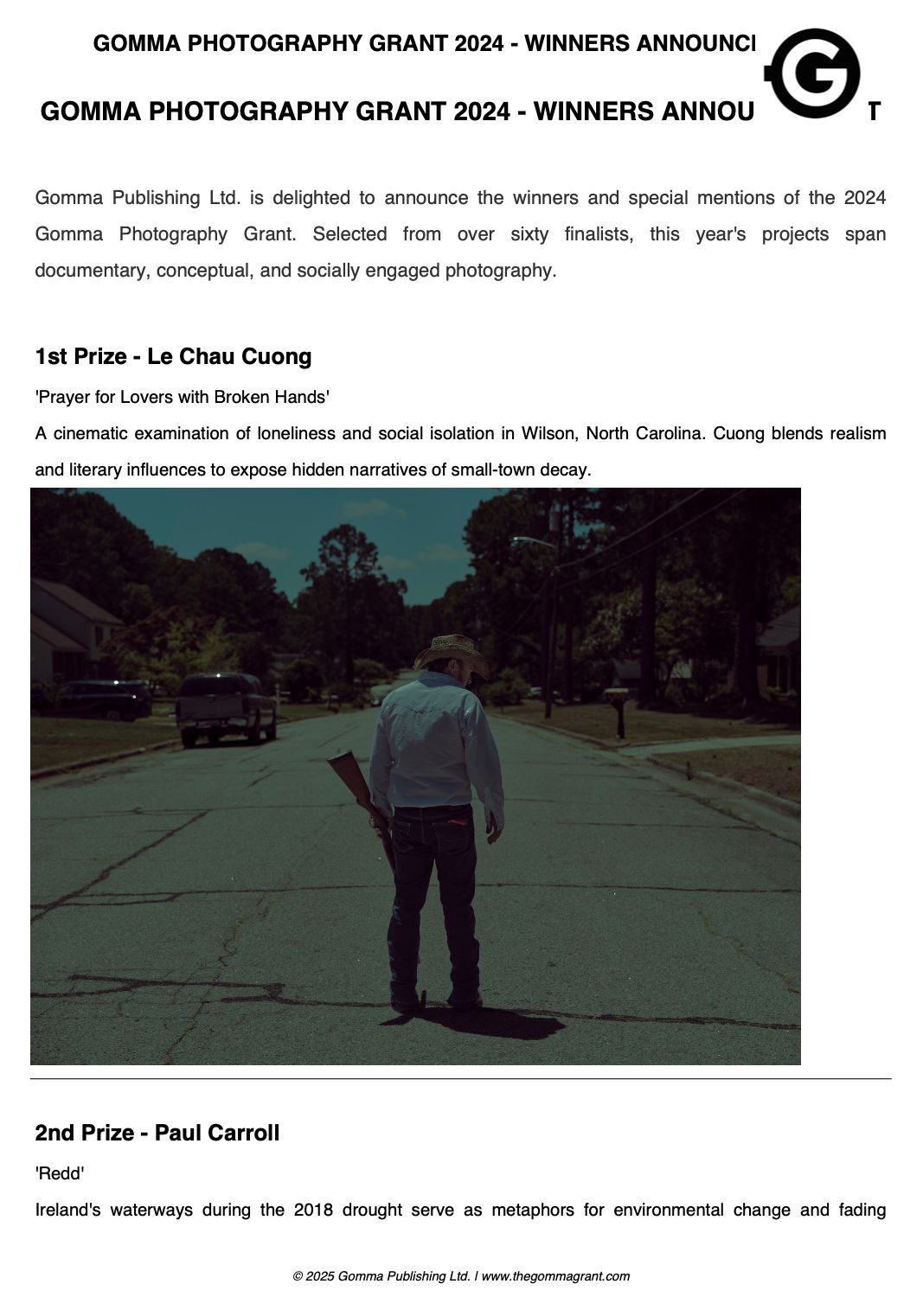 Winners results announcement in February 2024The distinguished grant contest awarding astonishing photography. This year in its 12th edition, the Gomma Grant can look back on a decade of spotting and awarding photographers, who have gone on to grow their careers internationally as well as getting published and exhibited in various countries.
