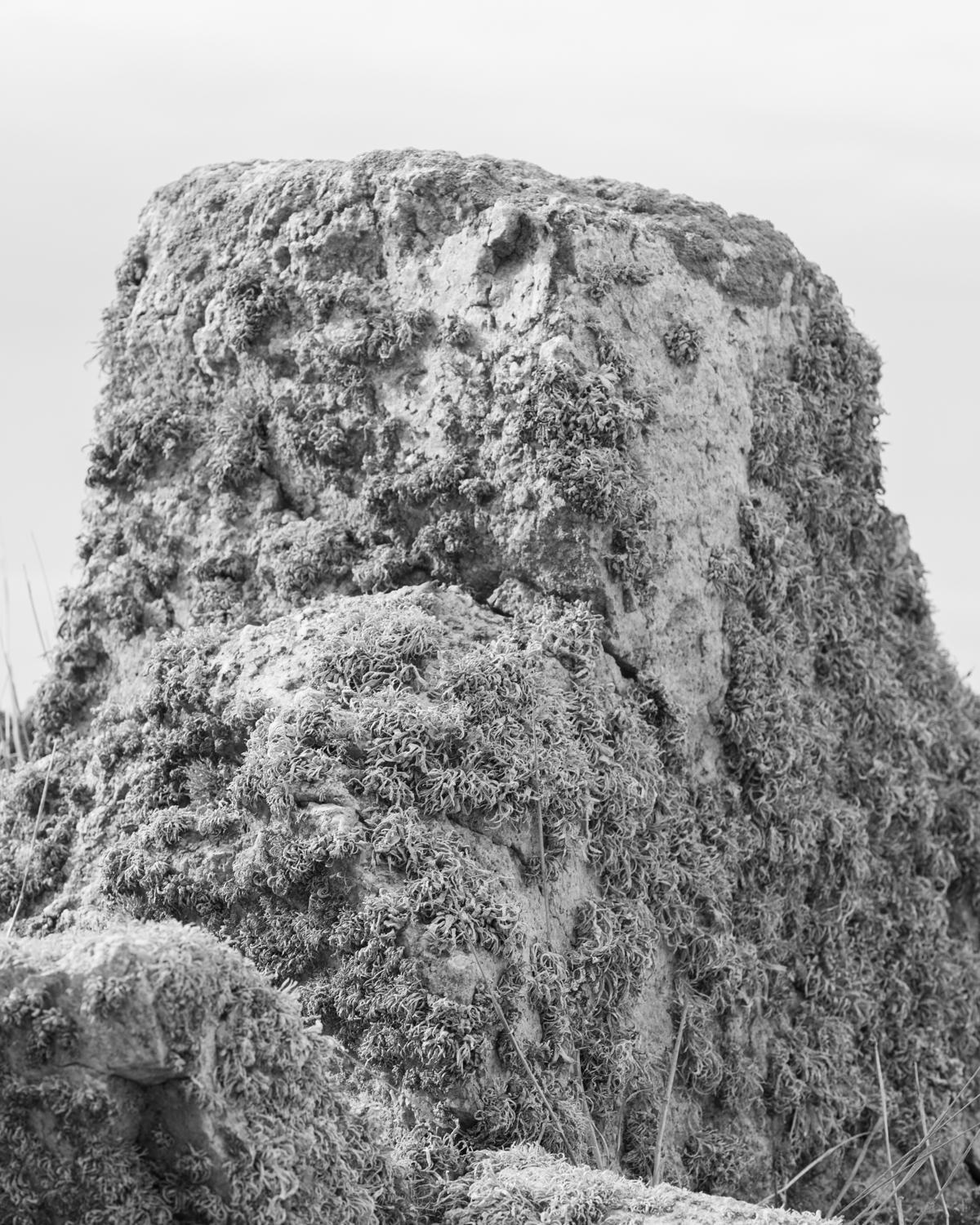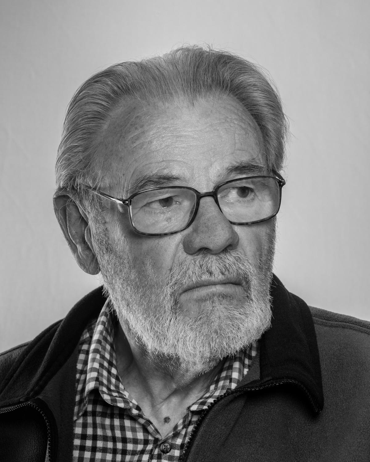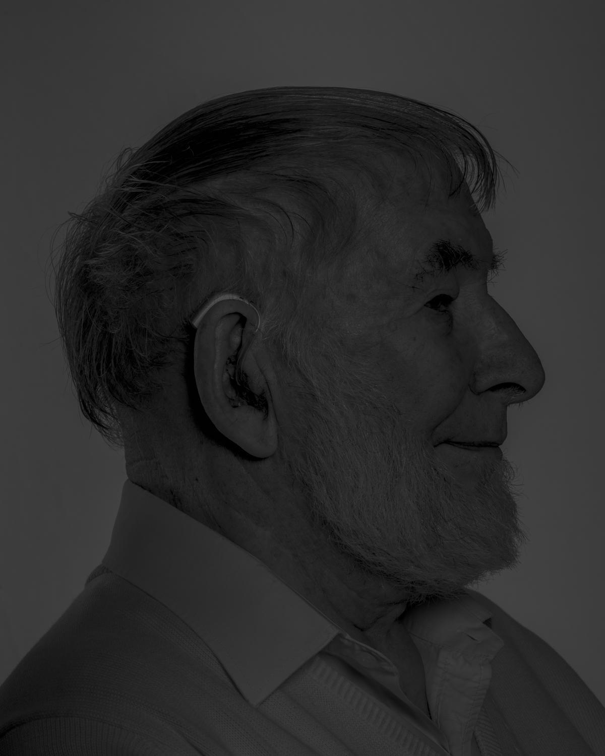 In 2019 I began to make a series of portraits based around the island of Jersey’s indigenous language of Norman French. Each portrait is titled with a Jèrriais word that each native speaker has chosen to represent a personal or symbolic meaning, or a specific memory linked to childhood. Some portraits are darker in tonality to reflect the language hidden past, when English was adopted as the formal speech in Jersey and Jèrriais was suppressed publicly and forbidden to be spoken in schools. On a linguistic level the project is exploring the space between the formal, etymological and vernacular use of Jèrriais. In an island made of granite most names are forms of the Celtic, Norse and Latin words for rock. Juxtaposed with portraits of Jèrriais speakers are images of Jersey rocks that are all designated as Sites of Special Interest; important geological outcrops that are protected from development and preserved for future public enjoyment and research. The native speakers of Jersey French should be classified as People of Special Interest and equally be protected from extinction through encouraging greater visibility and recognition as guardians of a unique language that are essential in understanding the island’s special character.