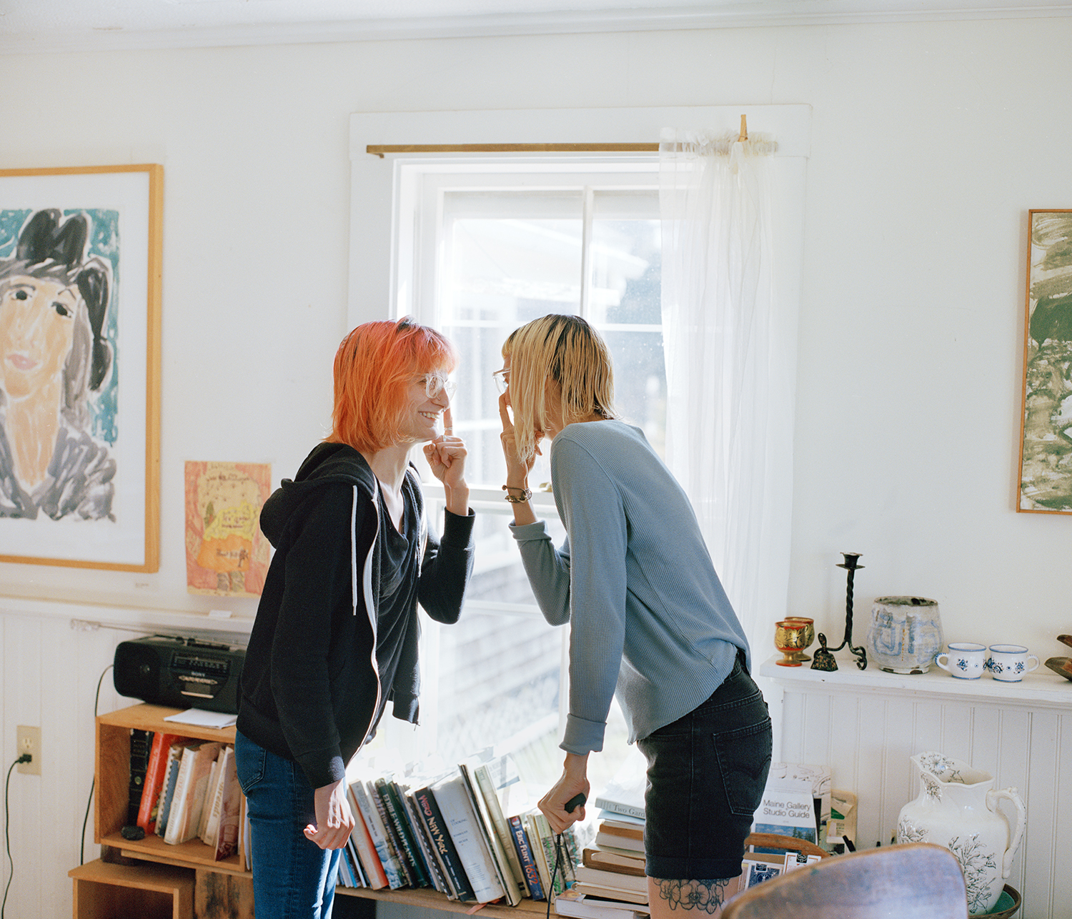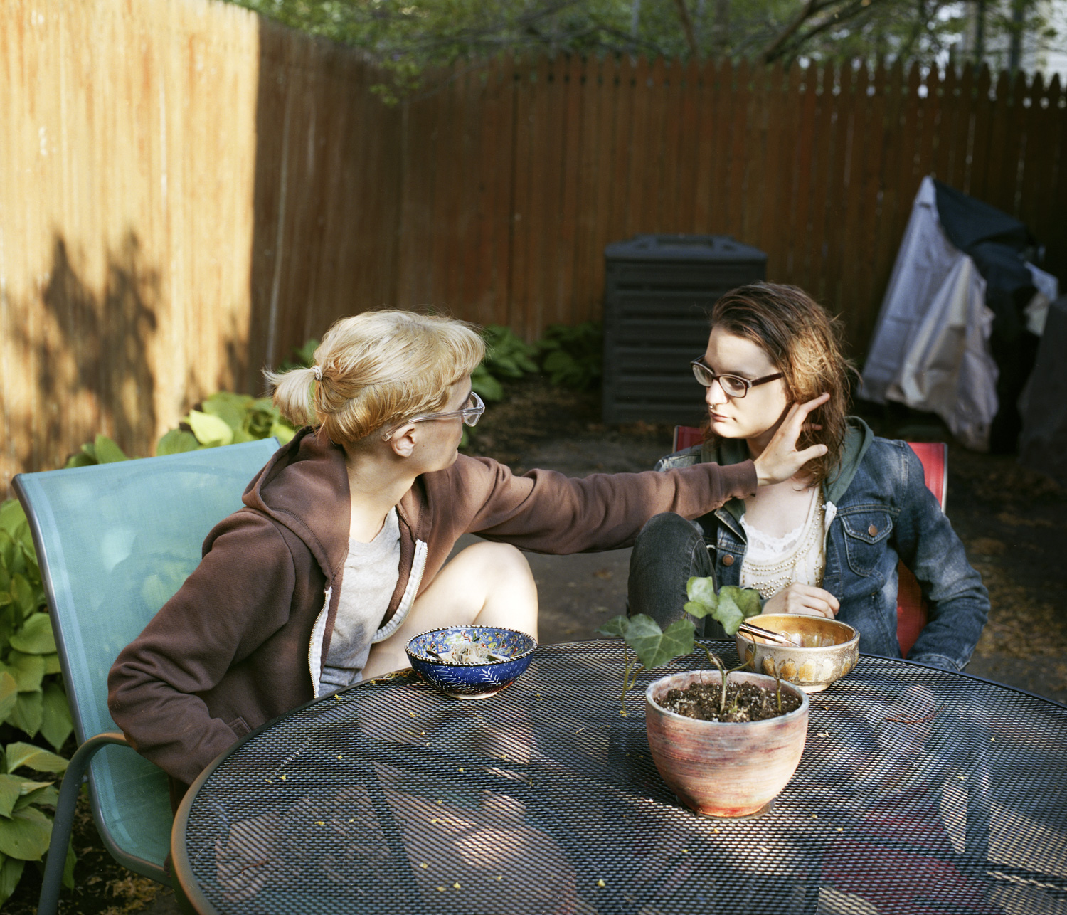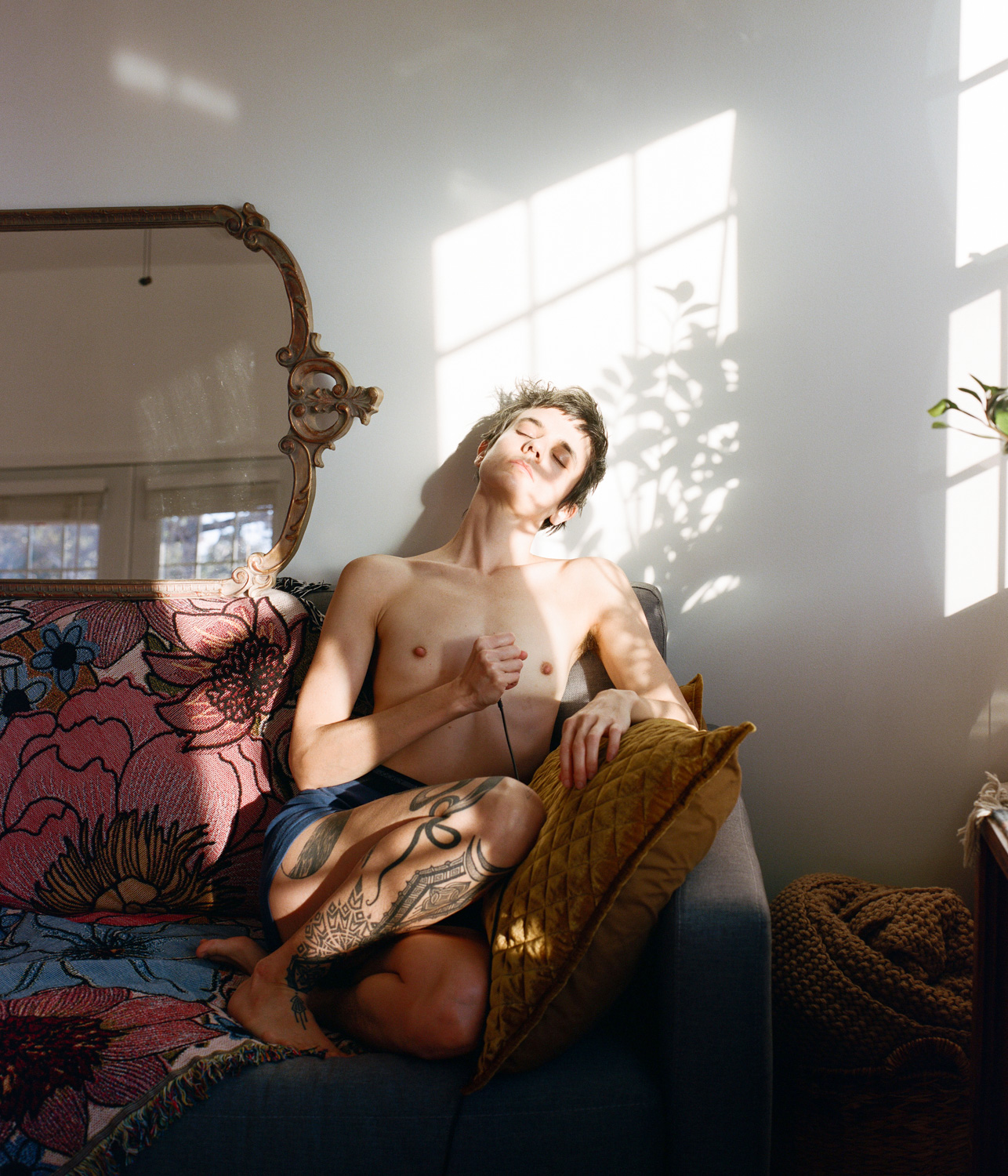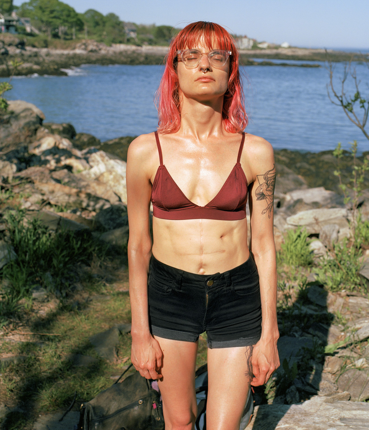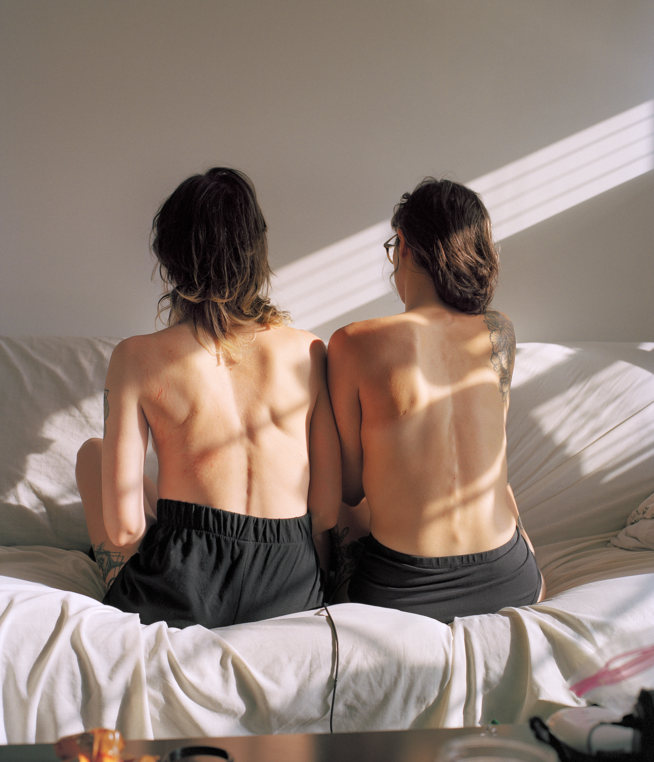 “before the last lilac blooms,” is a collaborative decade-plus film photography project between twin siblings Bianca Sturchio (she/her) and riel Sturchio (they/she). riel is queer, and someone who lives with chronic illness in the spectrum of disability, and Bianca is queer and disabled. The collaborators utilize photography to provoke and examine the vulnerability they experience from their unique manifestations of queer identity, illness, and disability. Throughout their lives, the otherness of being categorically named “the twins” placed a singular and inseparable identity upon Bianca and riel. riel and Bianca respond to their internalized interconnectedness from being mistaken for one another and use photography to reimagine their separate and connected identities within their shared realities. riel and Bianca's photographs oscillate between reality and fantasy, creating ‘another world’ by photographing the mundanity of everyday life, and documented and selfconstructed scenes. Through rich color, ambiguously cropped images of the body, visual metaphors, and sincere portraits, they convey celebratory, challenging, and often invisible aspects within the intimate world-building they share, imagine, and create.