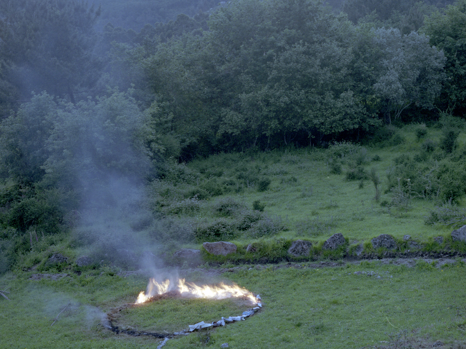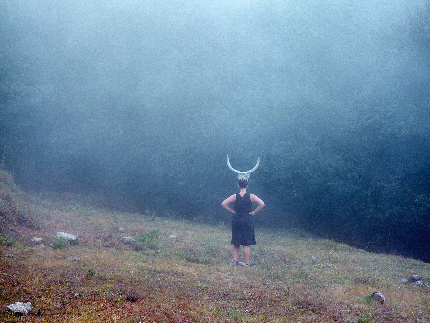 I grew up in Minho, Portugal, in an empty place on top of a hill, between the thick fog and the open sun. I was raised by three women. This context laid the foundations for my identity. My references were based on the marked cycles of the seasons and the feminine universe. The women who generate, create, care for, kill and feed. The telluric and magical women, endowed with intuition and sensitivity to manage life and anticipate death. It is believed that women establish a maternal bond with what they create, be it children, plants or animals. The primordial act of feeding is a manifestation of love. From this geographical area I recover the connection with my ancestry, family, physical, spiritual; my heritage. Encounters coexist, human and nonhuman connections, memories, stories lived and told, the familiarity of animals, fog and running water. Bone Foam moves from an individual experience to a broader look at the need to connect to something bigger and outside of ourselves, be it our roots or the multitude of the universe. At this challenging time for humanity, the ability to connect with who we are, wherever we go, seems fundamental to me.