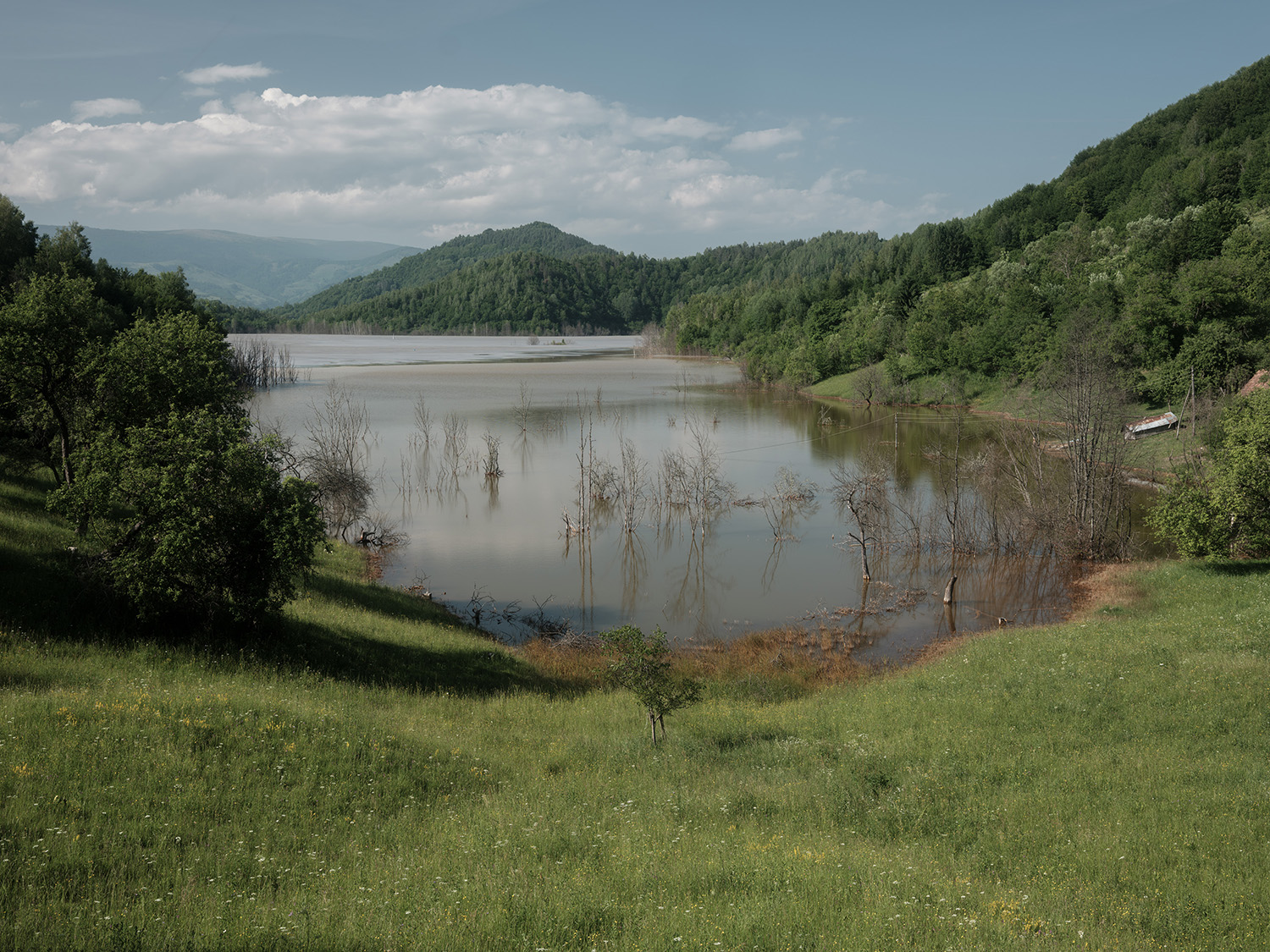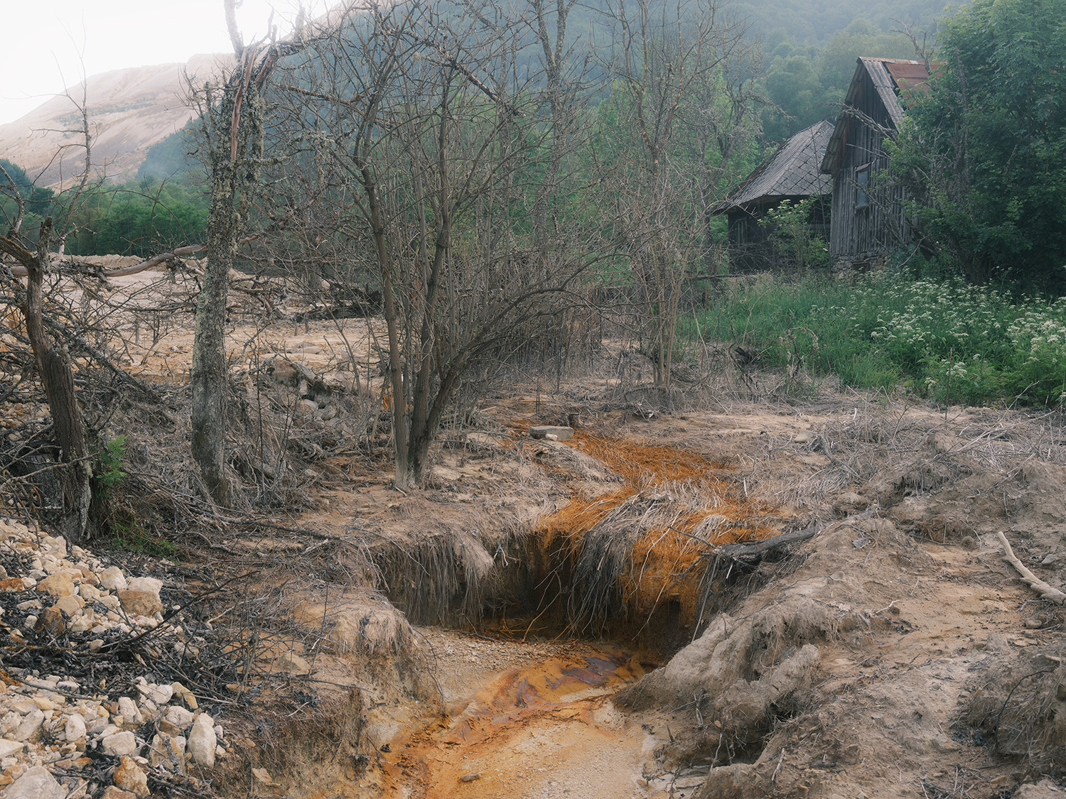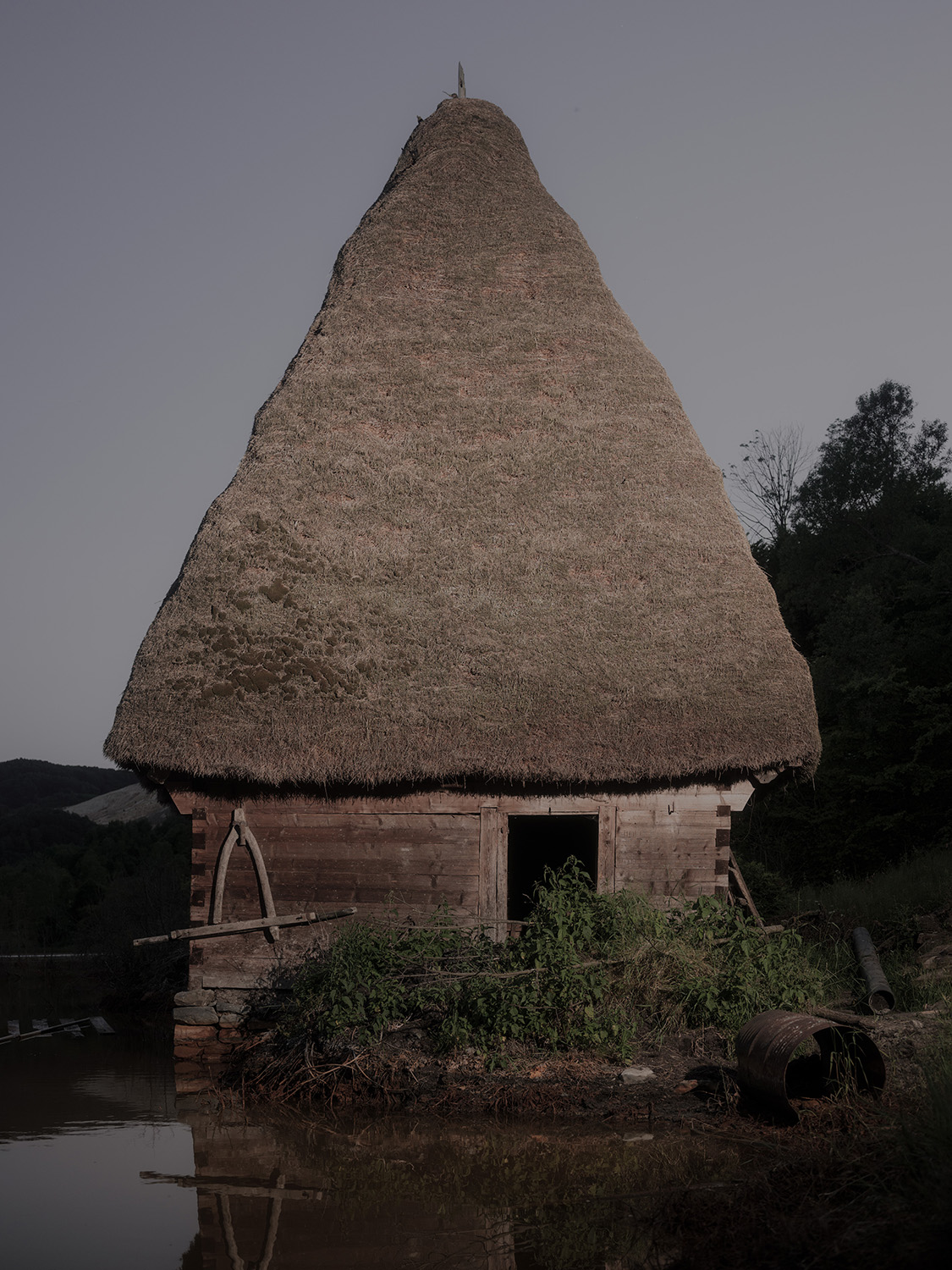 The Alba region of Romania, rich in gold, silver, and copper, is one of Europe’s oldest mining areas. In 1978, the village of Geamăna, located near the Roșia Poieni copper mine, was evacuated by government order. The valley was subsequently flooded to create a tailings pond for toxic mining waste, including cyanide and heavy metals. A vast contaminated lake now covers more than 130 hectares, submerging nearly the entire village—leaving visible only the church steeple and a few scattered houses. Although copper extraction ceased in 2000, the environmental consequences remain severe: water, soil, and food chains continue to be threatened by contamination.Geamăna’s toxic lake has been described as a “ticking ecological bomb”—a destructive force that exceeds human control and resists easy comprehension. This condition echoes the sentient and unfathomable ocean in Stanisław Lem’s novel Solaris, which confronts humanity with realities beyond its capacity to fully understand.The project approaches Geamăna’s lake as a hyperobject, drawing on the concept proposed by Timothy Morton to describe phenomena so vast—such as climate change or radioactive waste—that they defy total perception while profoundly shaping our world. Both Geamăna and the ocean in Solaris expose forces that restructure ecosystems and human existence alike, foregrounding the limits of human agency and comprehension.