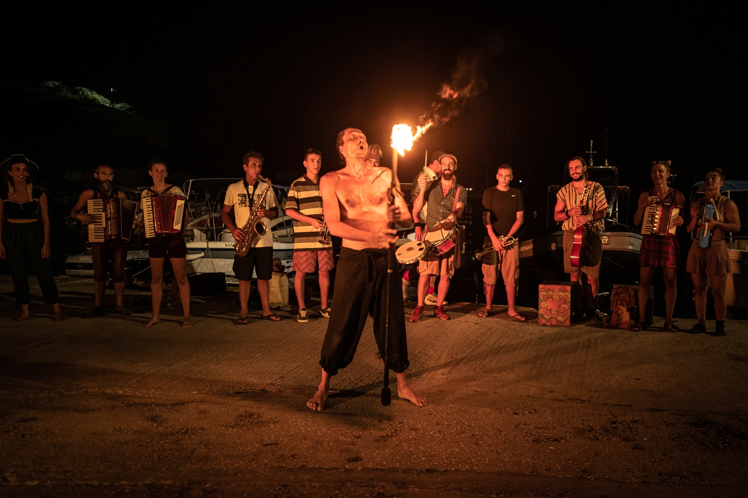 It all started as a dream, the one of young people wanting to live their life in a different way, with the energy of their passion and their ideals. When Fred left his hometown in Alaska in his quest for utopia, he wished to live a life in a moving community, traveling and doing circus in contact with people, inspire others with the magic of the performances and finding a sustainable way of traveling to be in harmony with the environment. First it was the bike-circus, then the ‘Sea Clown Sailing Circus’, three boats sailing the Ionian Sea of Greece to bring circus in places where it was basically nonexistent. Every year the crew of artist changes, but the same spirit remains, even in the last two years despite the Covid-19 restrictions, which actually inspired the crew to incorporate Ancient Greek philosophy myths with their circus performances. The goal of this nomad crew is to allow people to reconnect to the child inside of themselves, and a way to spread hope, light, happiness and magic in a time where dreaming seems have become more difficult for the people and to invite them of their constant quest for an utopian world.
