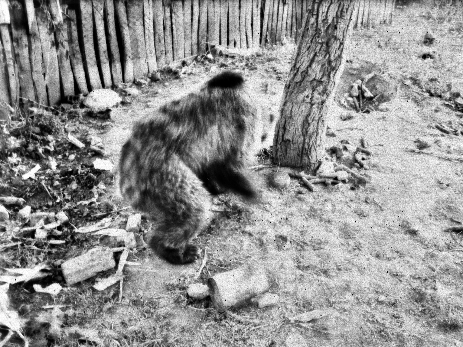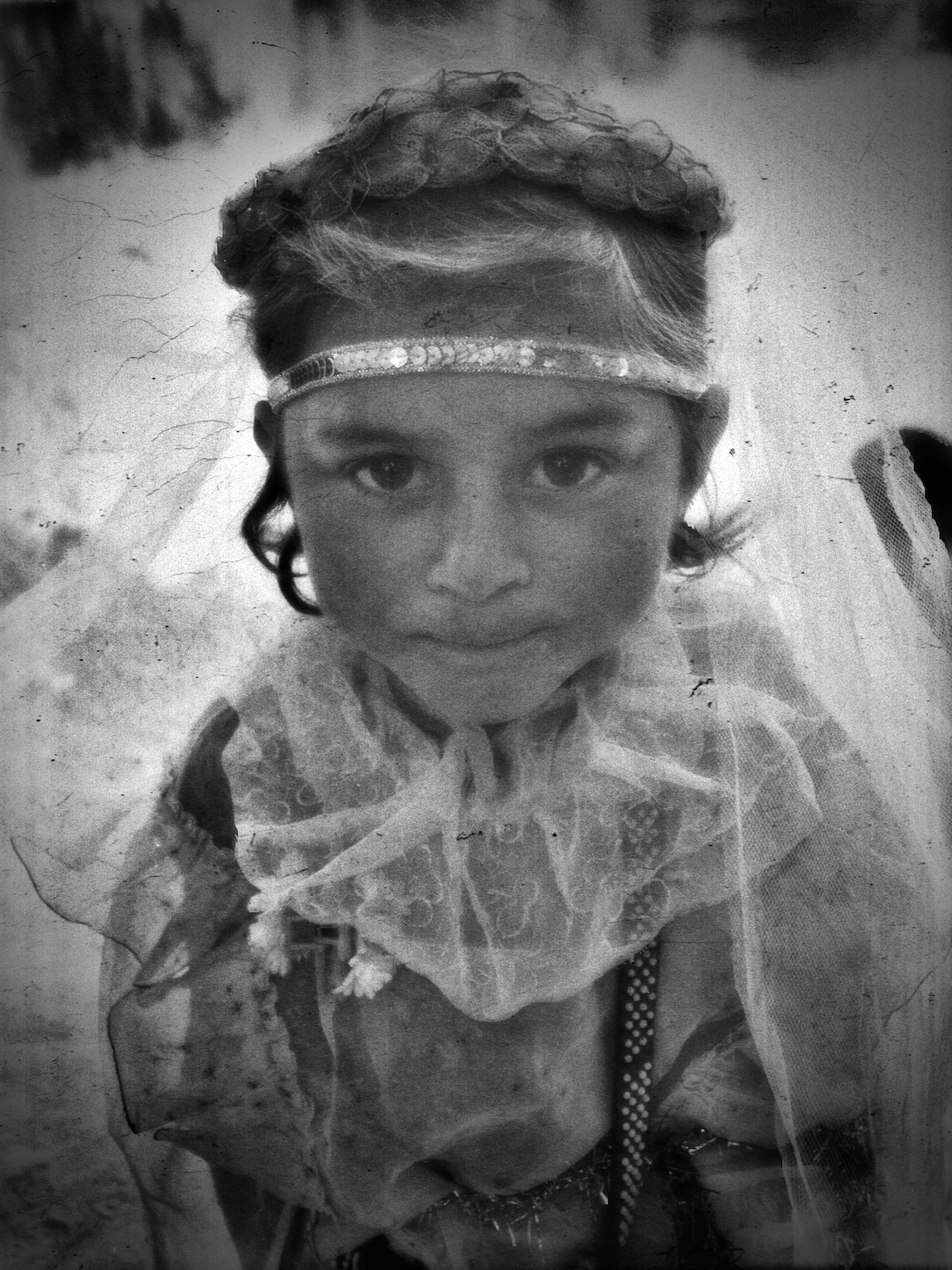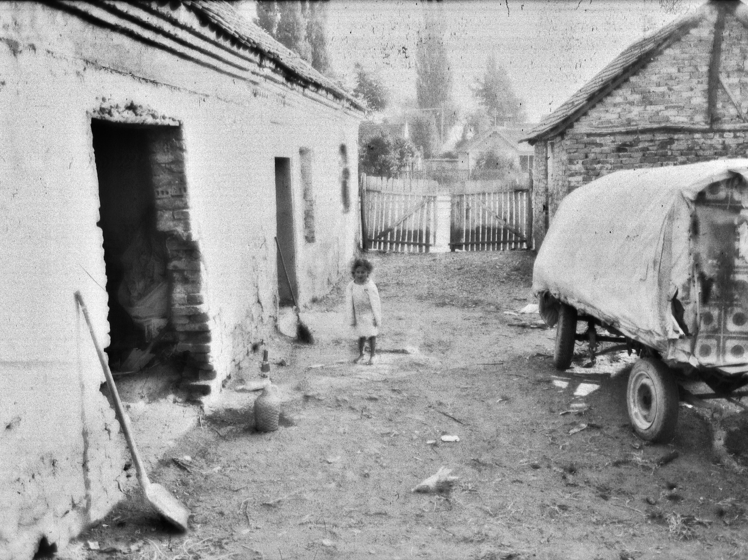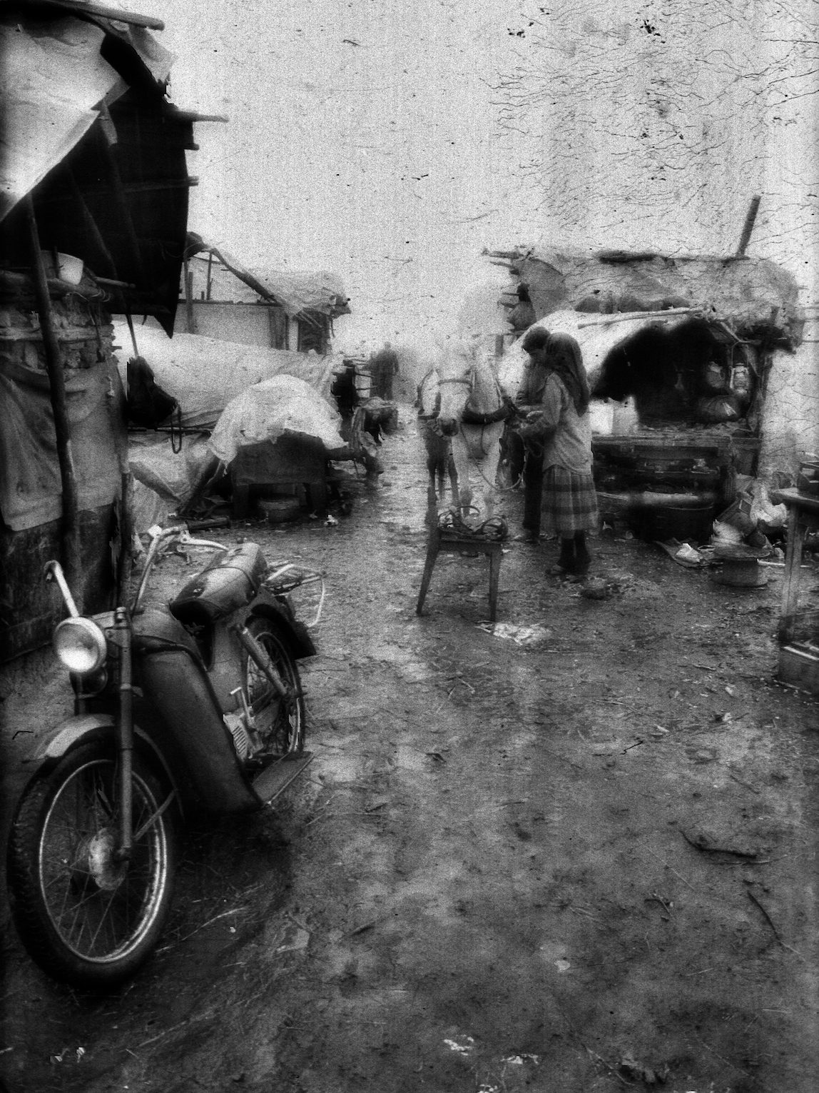 In the year preceding the war that led to the collapse of Yugoslavia, I spent several weeks living among a Roma community while preparing a film with them. Some were still bear handlers. Their circumstances were already deeply precarious—marked by poverty and violence, yet also by warmth and moments of shared joy that shaped our days together.With a 24x36 Pentax K1000, I photographed our time in black and white, capturing fragments of daily life as we experienced them. Many years later, I rediscovered the negatives in my cellar, with the intention of developing them into a photographic series. Having taken no particular measures to preserve them, I found that time had damaged the film.Rather than diminishing the images, this fragility felt profoundly resonant. The physical deterioration of the negatives echoes the vulnerability of the lives portrayed and the historical rupture that followed. The threat of time—visible in scratches, stains, and fading—becomes part of the narrative.The photographs are printed in a format of 18 × 24 cm on Japanese paper.