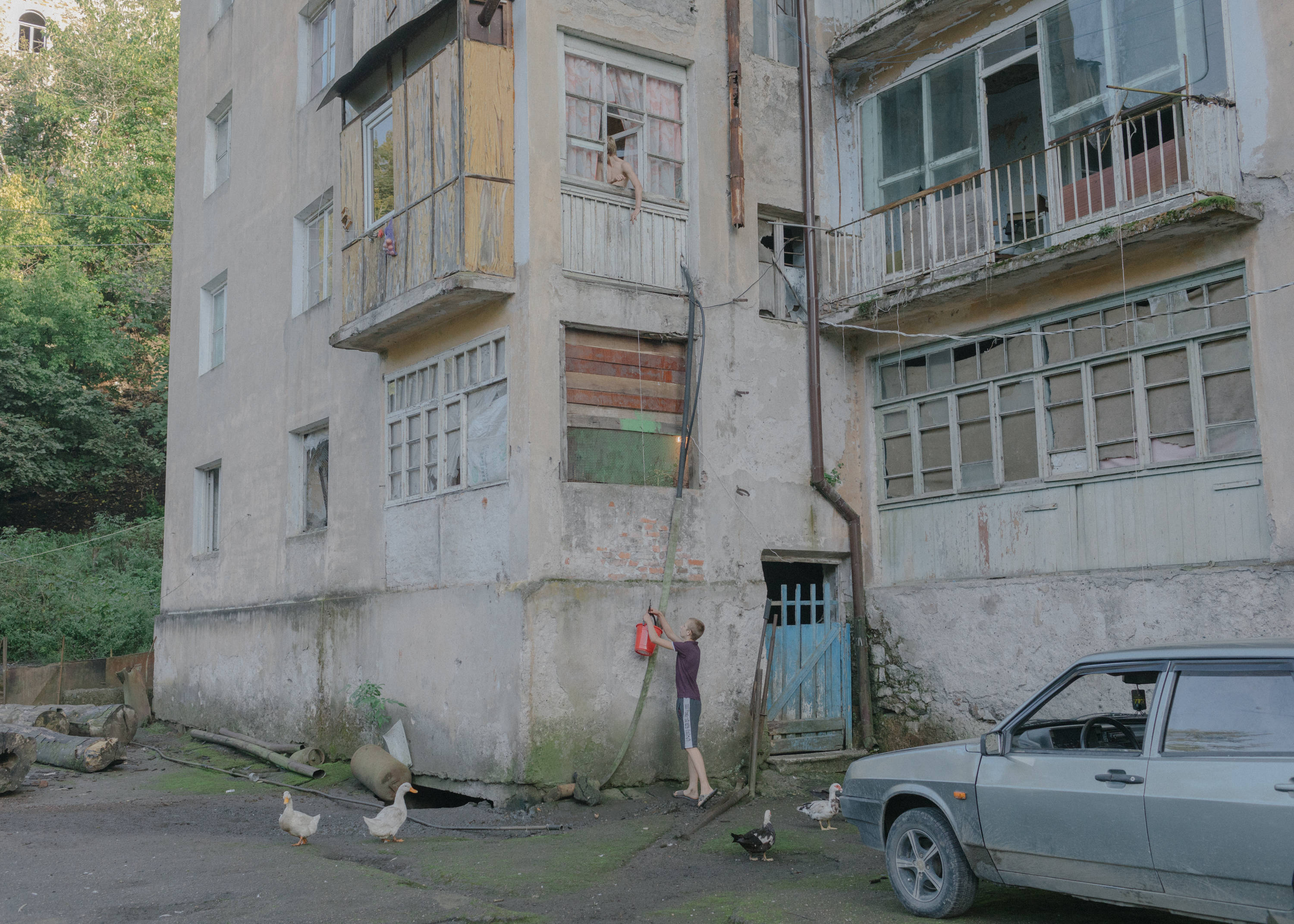 The Land of Soul looks at the life in the mountain mining villages of the Tkuarchal region of Abkhazia, once thriving, but never fully recovered after the siege during the 1992-1993 Georgian-Abkhaz war. This is an exploration of the post-war trauma, a search for the traces of war imprinted in people’s bodies and in the façades of the surviving buildings. The images of the semi-deserted places become a metaphor for the country itself: Abkhazia still remains a ghost state on the world map. Its autonomy is recognized by a handful of countries. The trauma of war, the search for the identity during the post-Soviet era, the complex relations between nature and urban spaces — all this continues to define its current context. Longing for a lost past and an uncertain future is correlated here with the painstaking work to maintain a space for life among the ruins. The traces of war permeate it and the subtropical forest seeks to completely absorb it, but as long as people for various reasons have not left their homes, it will be something more than just a spot on the map, frozen in tension of the conflict which is stopped but not resolved.