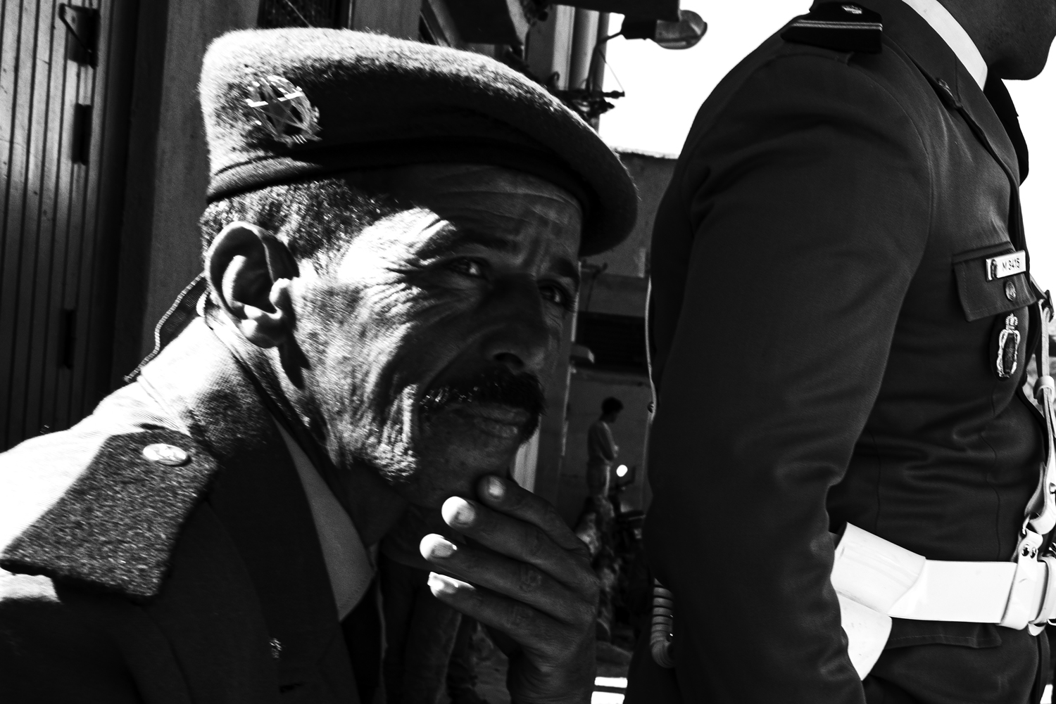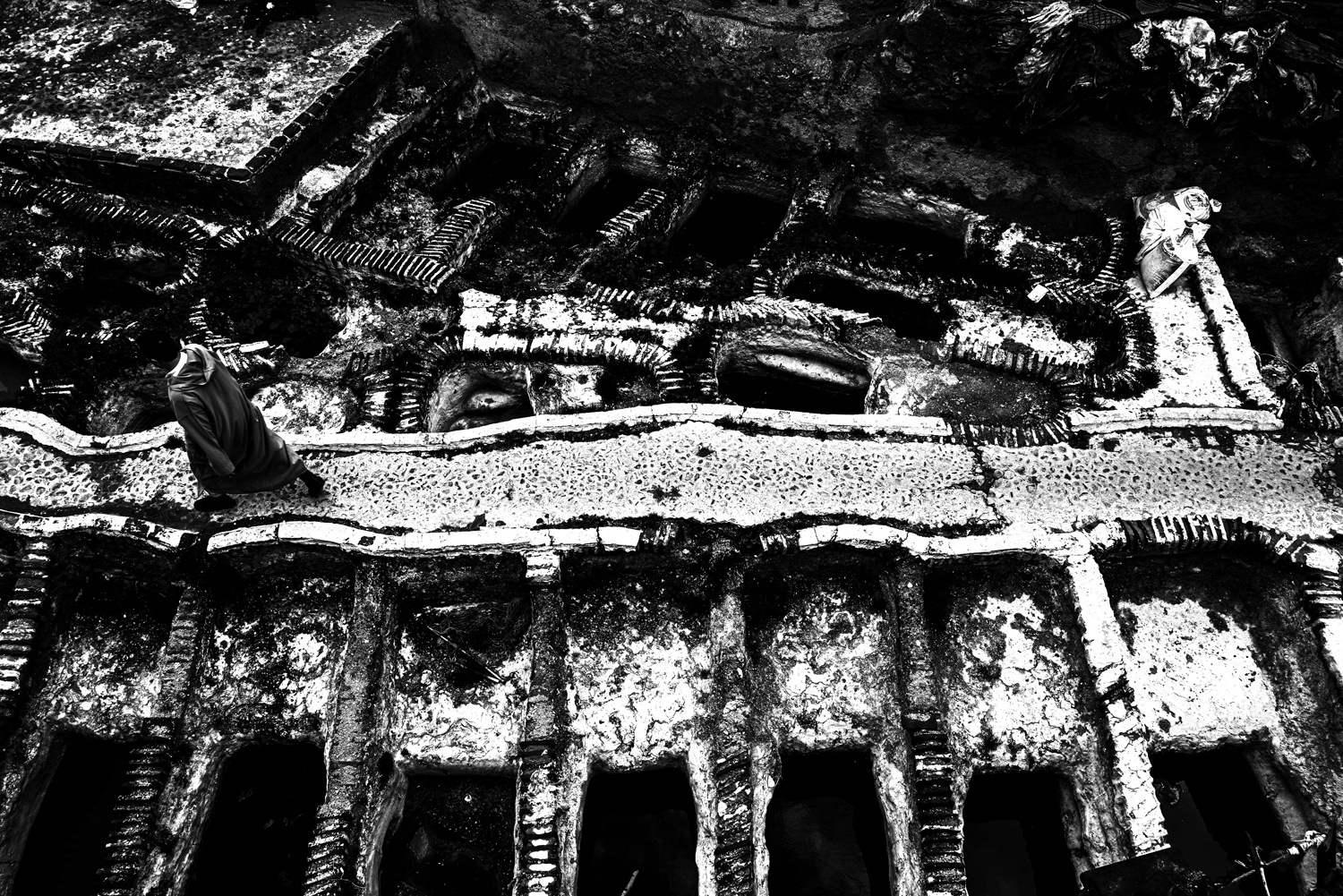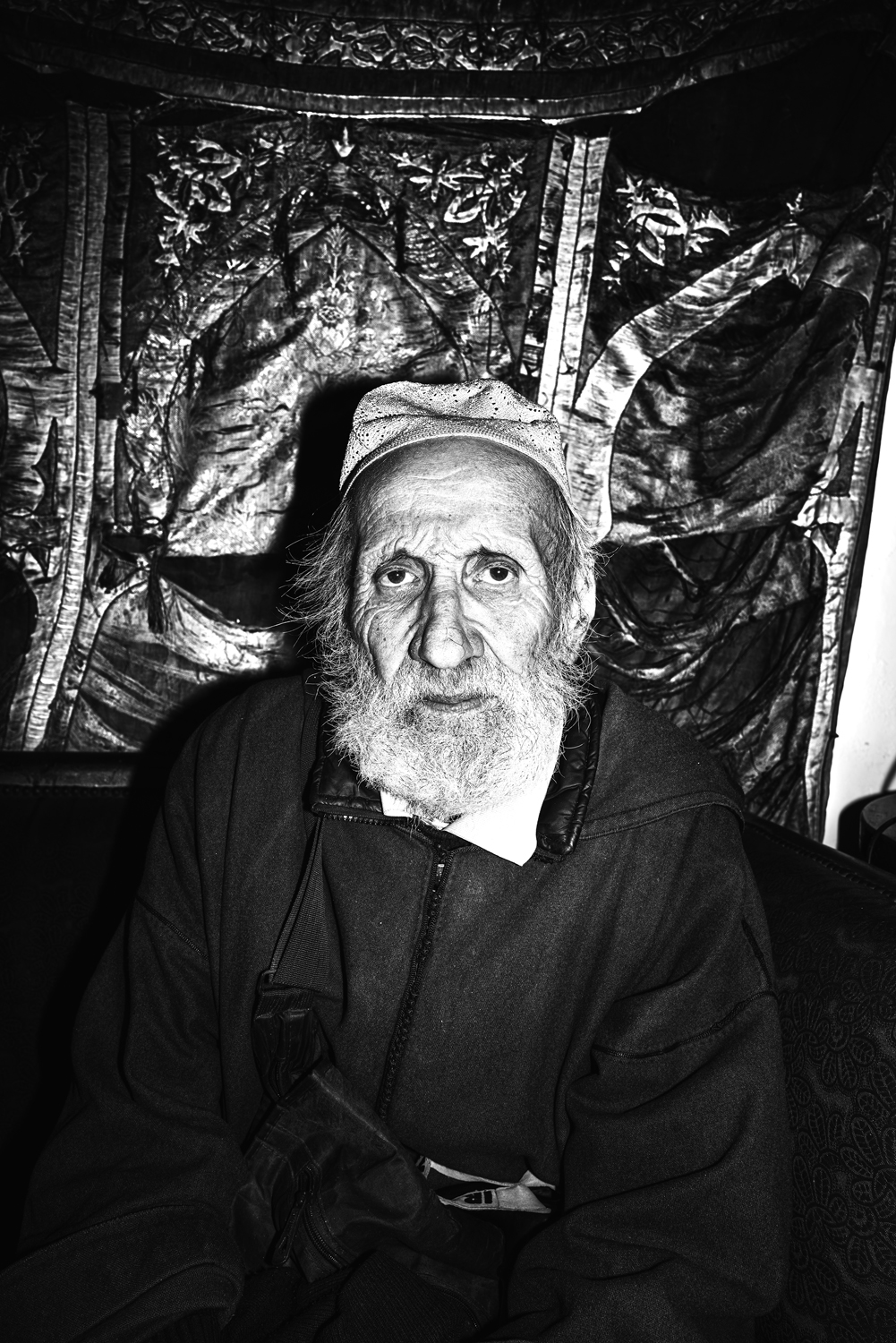 On the walls of Tangier’s Kasbah, salt corrodes colonial stone. In the Rif, the soil still carries traces of mustard gas dropped a century ago. The Taste of Black Residue is a long-form black-and-white psychological documentary that traces how post-conflict endures across Morocco—a conduit between Europe, Africa, and the Middle East, territories historically bound by colonization.Nearly two decades after my deployment to the Middle East, I returned to a landscape not marked by visible war. Although Morocco is rarely described as post-conflict, it bears the enduring imprint of French, Portuguese, and Spanish rule. This work challenges conventional war photography by turning away from active combat and toward its aftermath. It is not the gaze of an outside witness, but of someone who once participated and now returns to observe.From the harbour walls of Tangier to Marrakech’s colonial boulevards, from the desert plateaus of Agafay to the tanneries of Tétouan, these locations form a cartography of colonial legacy. In each place, the residue of conflict manifests differently: in the gesture of a woman holding an orange at the meeting point of two seas, in a leaning cross embedded in a cemetery wall, in soldiers stationed at the gates of Aït Benhaddou. Together, these fragments create a network—geographical, thematic, and relational—through which the afterlife of conflict becomes visible.
