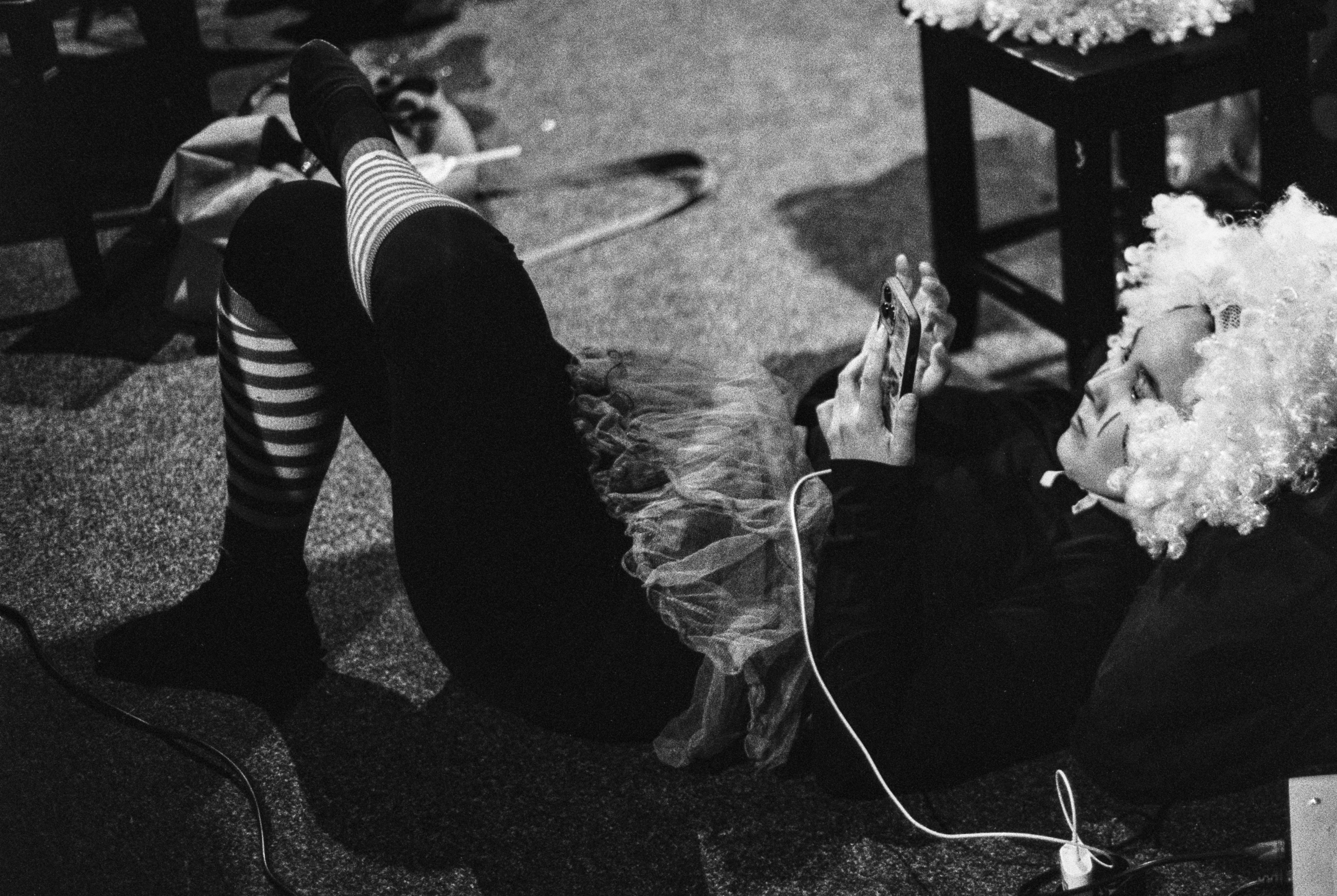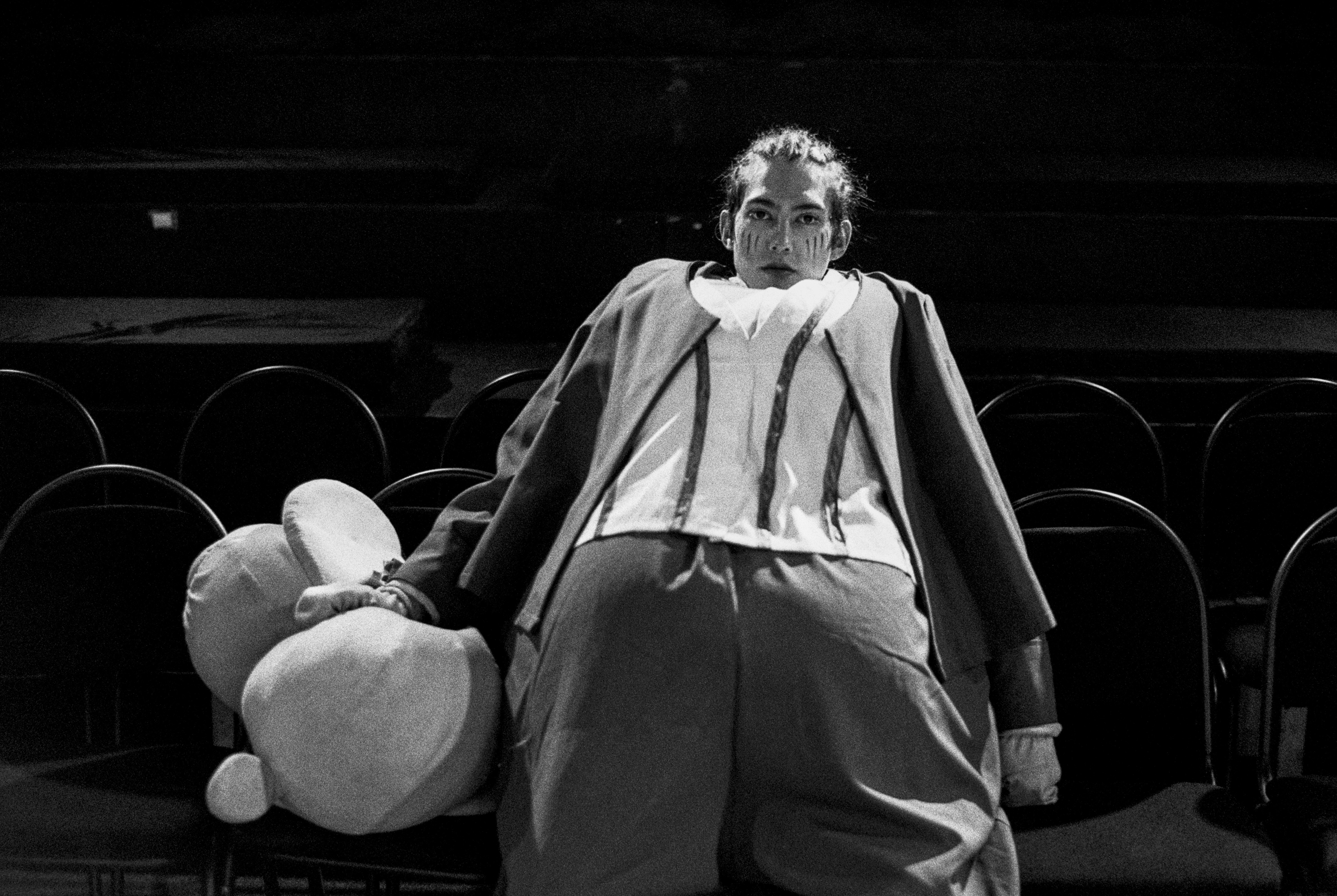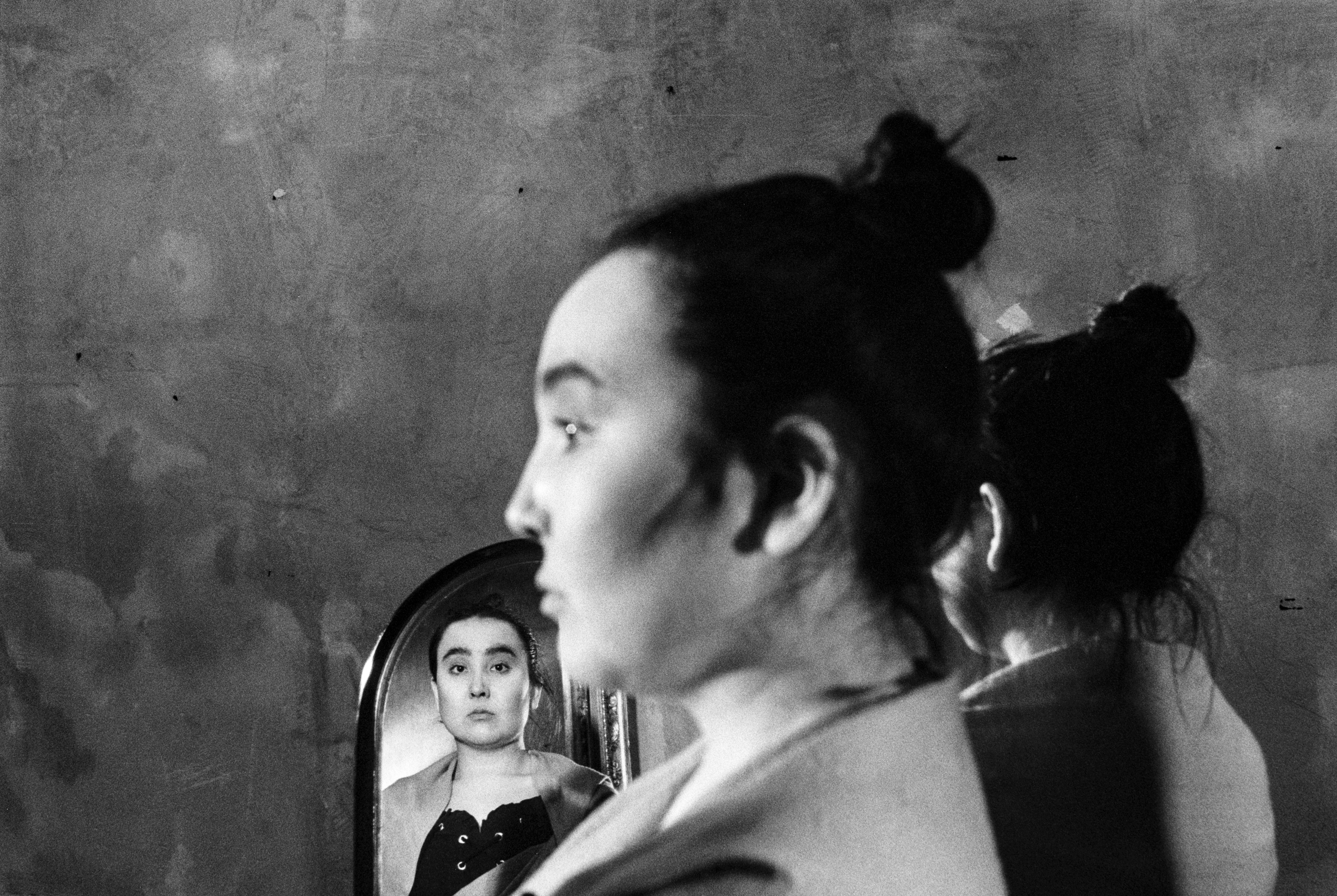 The project was shot in May-August 2023 at 2 local experimental theaters in Almaty, Kazakhstan - "Total Theater" and "Transforma Theater". Twentyfive years ago, I was studying at Theater School and came very close to becoming an actor, this experience had a significant influence on my personality and this project is dedicated to this experience. Theater is a complex community where the performance is only the public, external symbol of the internal theater processes. In this project, the boundary between the audience and the stage is broken, encompassing what happens before and after the performance. In every person multiple characters are residing: how they see themselves, how they would like to be, and how others perceive them. In an actor, there are additional characters coexist: roles, vision of those roles, how other actors and audience perceive those roles. The project has a native theater's cycle, reflecting the rhythm of theater life.