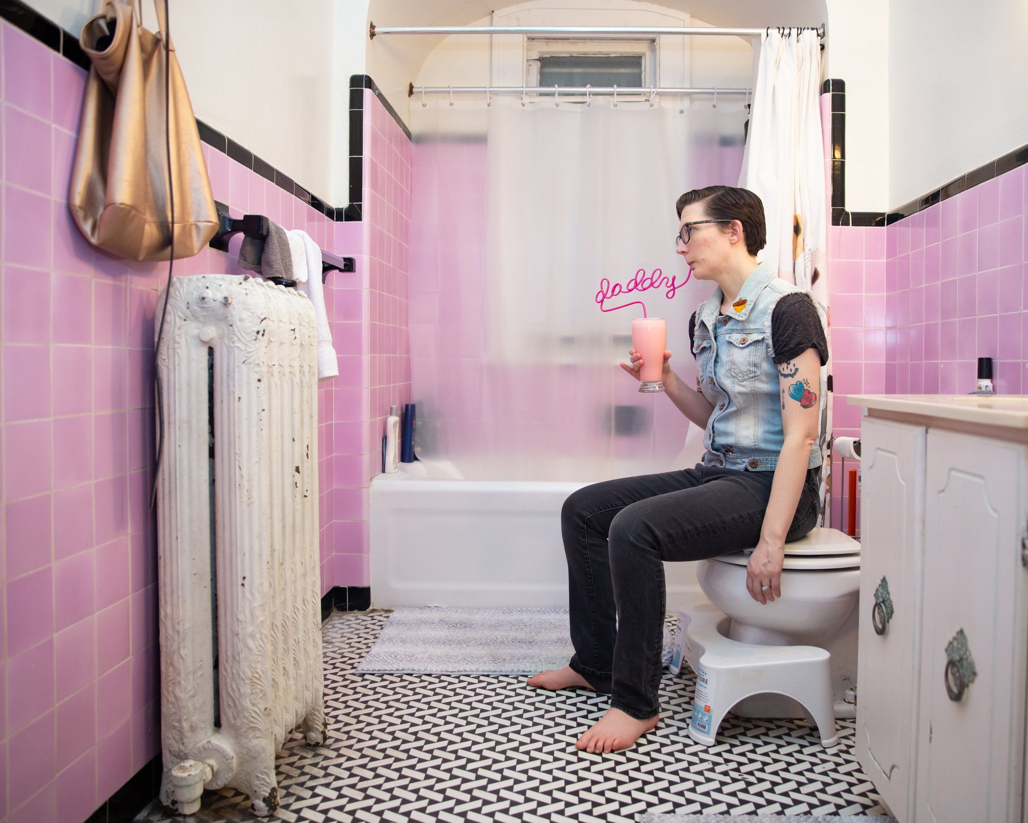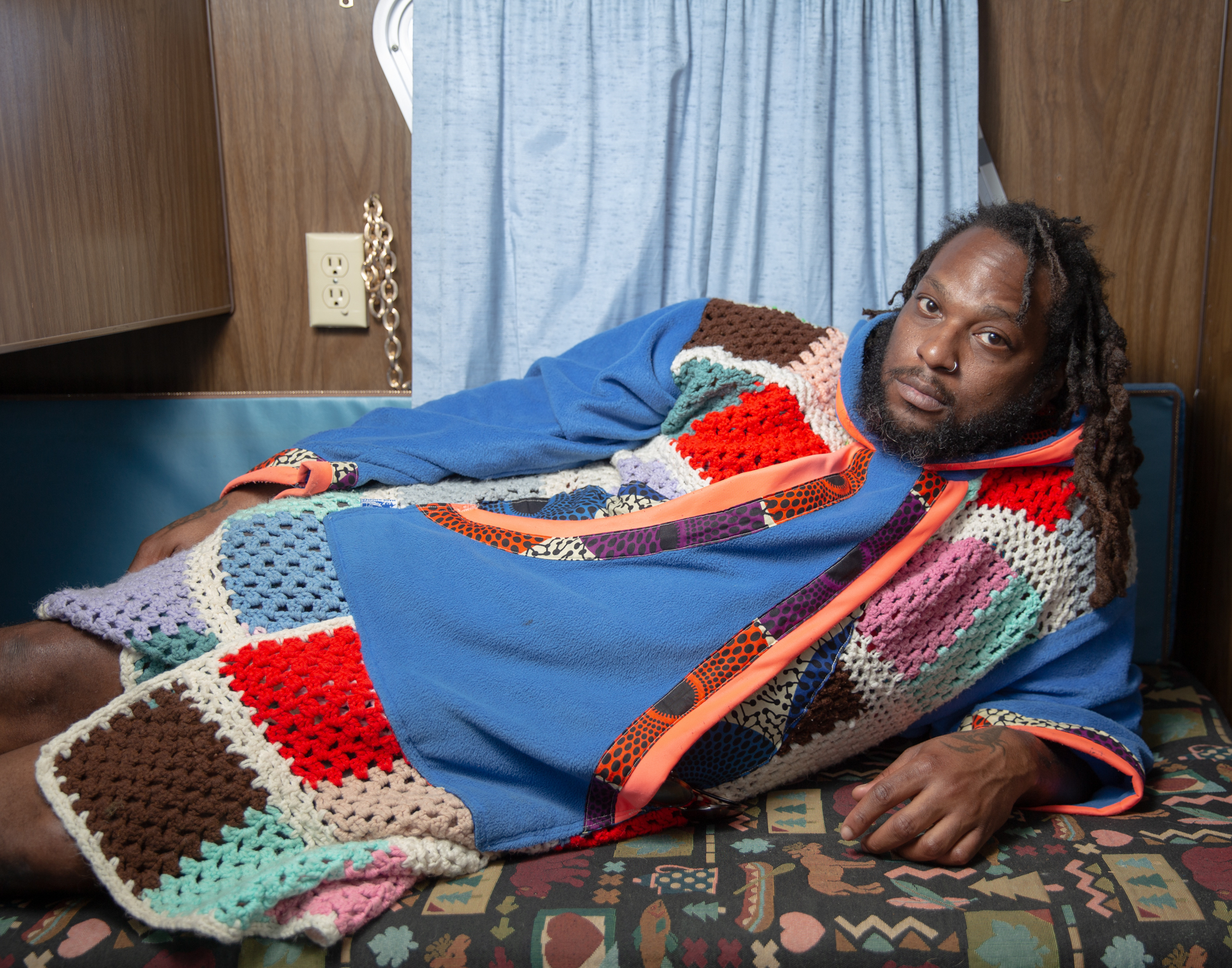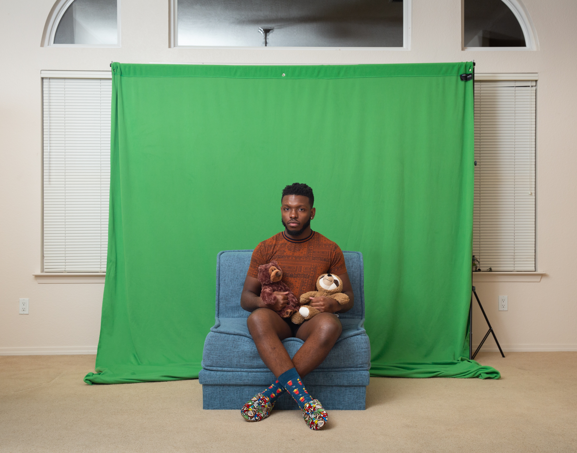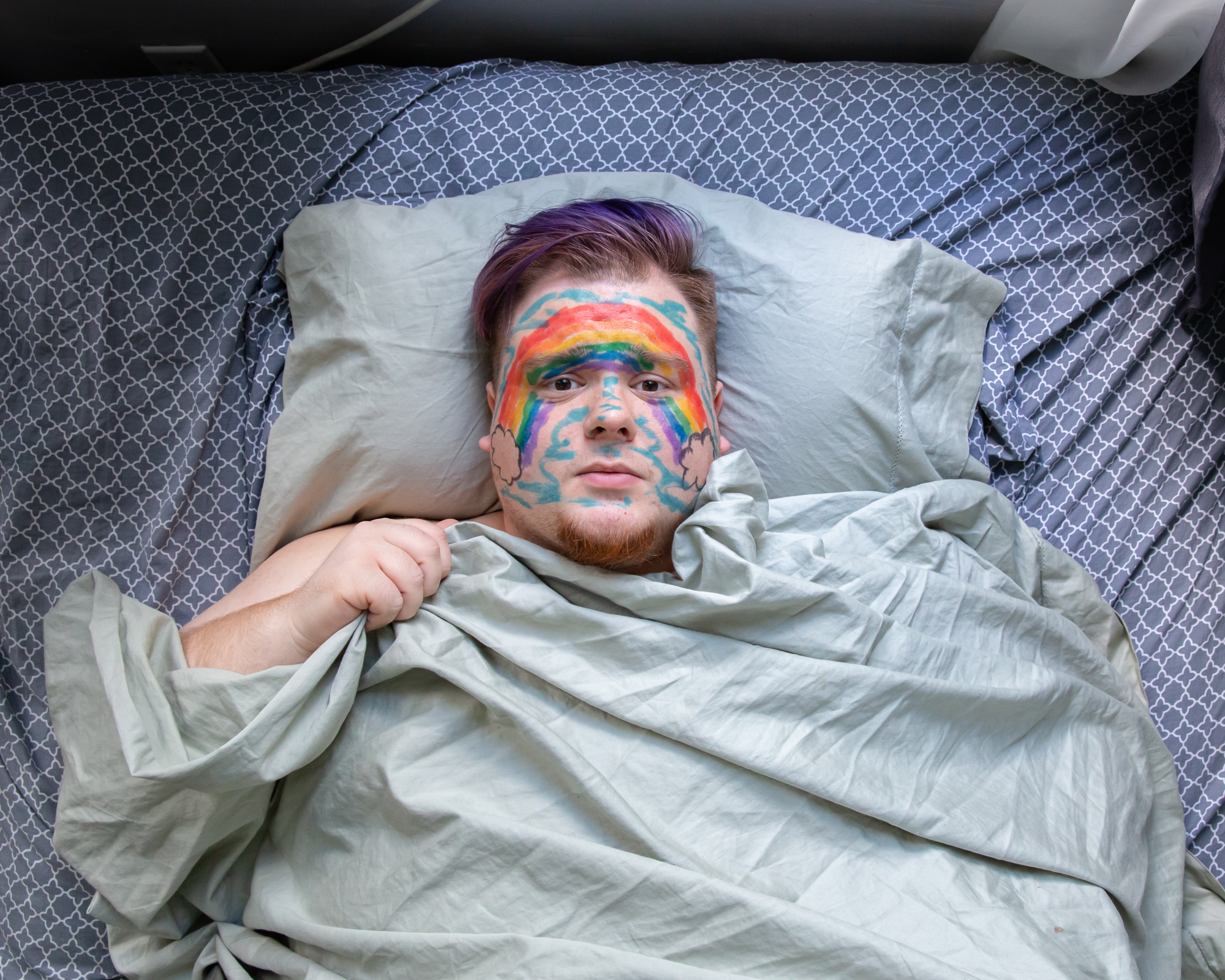 “No Femmes. No Fats.” When I started using gay dating apps as a teen, I saw this phrase frequently. As a fat queer person, this rejection from my peers set in motion a battle between my queerness and my body. This series began with self-portraiture exploring queerness through absurdity, humor, and play. Soon after, collaboration became an integral part of my work, with me often appearing in the photographs with others. The photographs are mostly taken in the individuals’ homes or other spaces they are comfortable in, and we utilize materials from their environment. This collaboration begins to break down the power dynamics that can exist between photographer and subject, as well as embody the camaraderie and companionship of queer communities and relationships. These photographs not only establish a space of queer collaboration and play, but also offer a counter narrative to the normative sexualized gaze of contemporary queer photography. My photographs do not offer concrete narratives of identity. Rather, they present fragmented narratives that exist in-between reality and fantasy, reflecting the transitional space in which queerness exists. When I take photographs, the process is spontaneous—not unlike the practice of freeassociation—and echos the dynamism of non-normative queer identities.