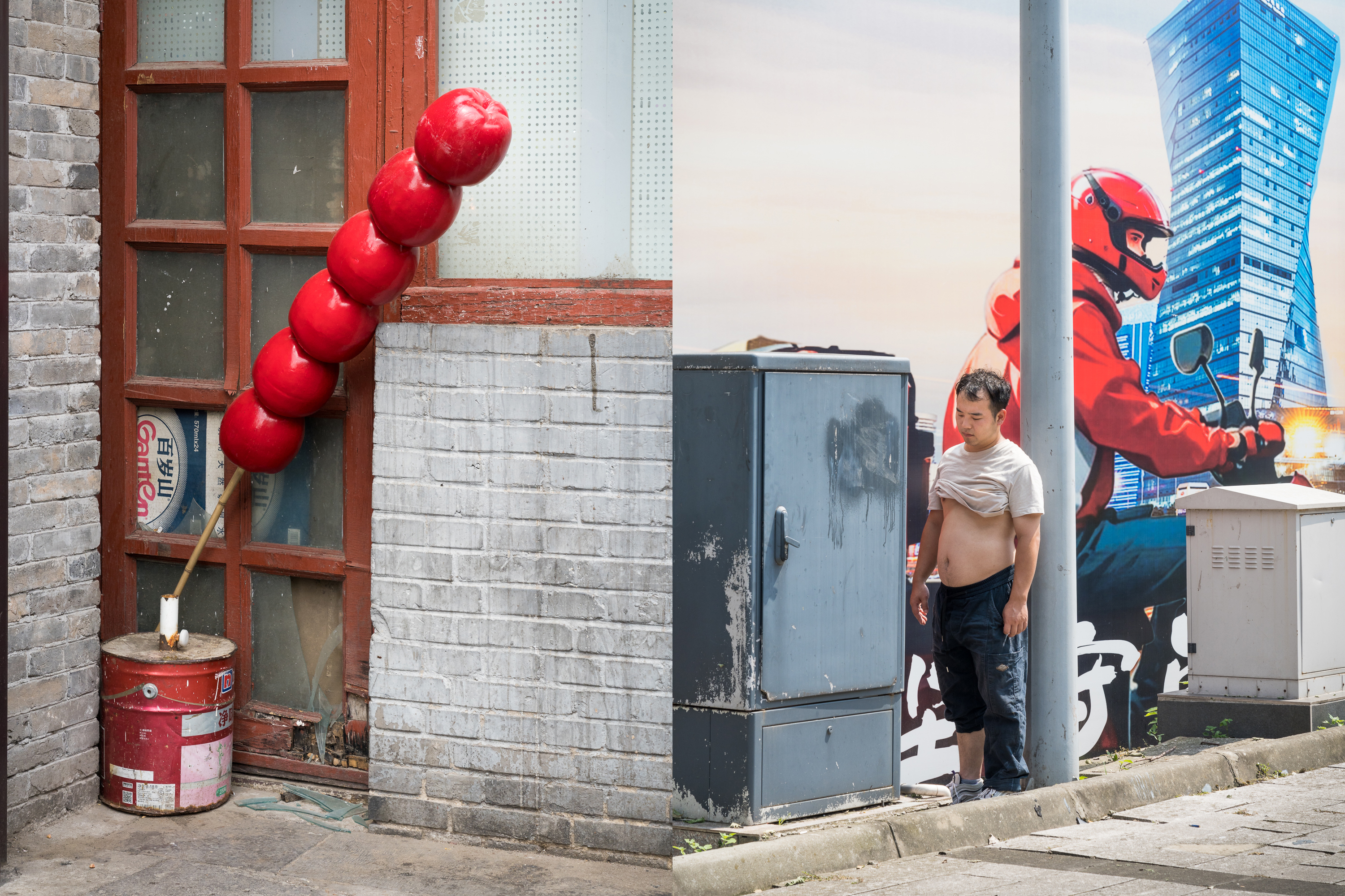 For Torsten Schumann, the urban environment is an inexhaustible repository of enigmas and contradictions. With subtle humor and an absurdist sensibility, he captures fragments of contemporary life in which people, actions, and objects briefly converge, forming suggestive internal logics of paradox, oddity, and unexpected connection.This approach is especially evident in his recent series Vermilion Confusion, China 2020–2022. Composed of decontextualized scenes from urban life, the work unfolds through formally and conceptually linked diptychs. Each pairing interacts with adjacent images, amplifying visual and thematic resonances. Together, they form a complex, montaged whole in which narrative coherence, plausibility, and meaning are simultaneously constructed and gently destabilized.By dissolving the boundary between appearance and reality, Schumann creates a photographic language that invites skepticism toward the medium’s presumed evidentiary authority, questioning photography’s claim to truth while embracing its ambiguity.