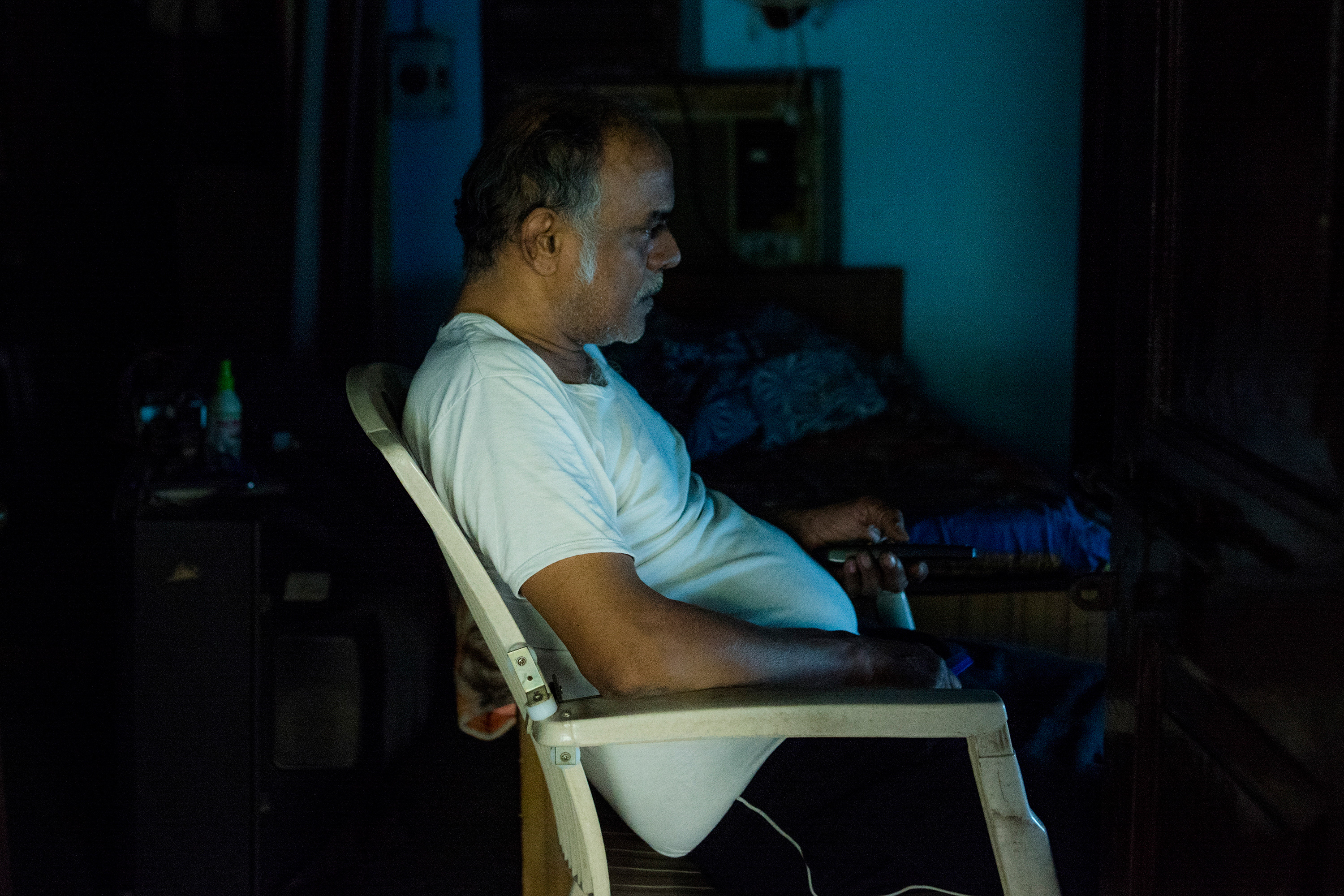 Artist statement: Sometimes I think about how cinema suspended me and my family from reality. My family would have been very different if my grandfather had not left his hometown with dreams of becoming an actor. He was fascinated by the image of an actor that he saw on screen. Cinema gave my family a time under the spotlight but the life we constructed around it crumbled after the death of my grandfather. It was my father who lead me into the world of cinema and while he too dreamt of becoming an actor, his dream was star crossed. He struggled all his youth, only to make a fleeting appearance in a film. While we shared a close bond during my childhood, at some point in time, I began to drift away from my father. To confront the distance between us, I began to photograph him. There exists generational trauma within the family, and I am looking for ways to overcome it. “Dear Cinema,” became an exploration to understand myself and my father through cinema and its many worlds. The more I worked on this, the more I understood what cinema gave and what it took.