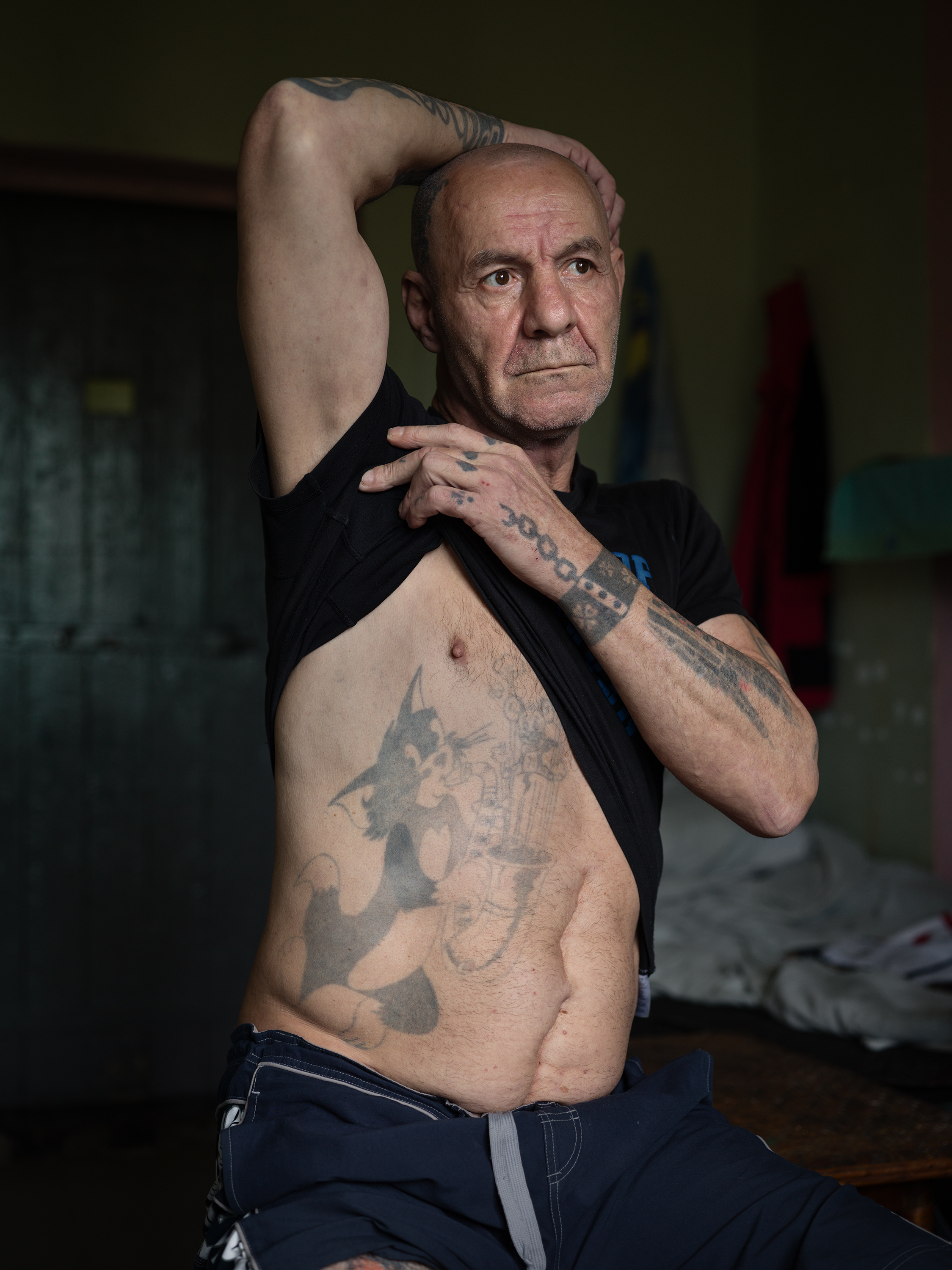 The project is deeply personal for the photographer, who only began his journey in photography in 2020 after a 25-year career as an actor. Karamazov’s transition from the stage to photography reflects his desire to express his own artistic voice and explore humanity’s complexities through the lens. In Their Place is both a project of artistic reinvention and a profound reflection on justice, human frailty, and the consequences of violence. Through his lens, Karamazov brings to light the forgotten lives of those imprisoned by society, capturing their existence with a striking visual richness and a sense of empathy that only a true artist can convey.« Gomma